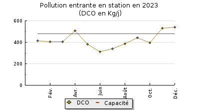 | DBO5 | 171 Kg/j | 48 % | 368 mg/l | 99 % | 1,4 Kg/j | 3,0 mg/l |