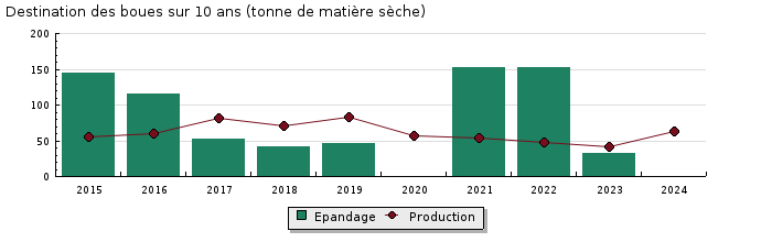| Sous produits : Les LPR N° 1,3,6 et ont été curés en 2021 par Alliance Environnent : 533 T de MS Les LPR N°1, 2 et 3 ont été curé en 2023 par Alliance Environnement : 33T de MS. Les LPR N°7 et 8 ont été créés en supplément en 2024. Cependant, aucune évacuation de boue n'a été réalisée cette année. Les refus de dégrillage sont compactés, stockés en container puis évacués par la SITA en incinération. Les graisses sont raclées vers un réacteur biologique, la biomasse produite est réinjectée dans le bassin d'aération. Les sables sont pompés par le SMEA vers Ginestous. |