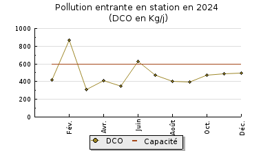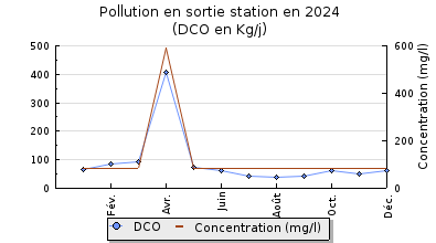 | DBO5 | 197 Kg/j | 66 % | 293 mg/l | 83 % | 34 Kg/j | 47 mg/l |