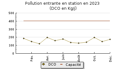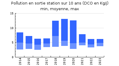 | DBO5 | 65 Kg/j | 36 % | 415 mg/l | 99 % | 0,5 Kg/j | 3,2 mg/l |