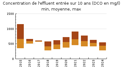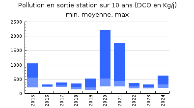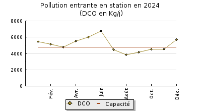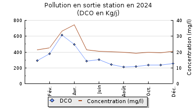 | DBO5 | 1 836 Kg/j | 43 % | 152 mg/l | 100 % | 39 Kg/j | 2,8 mg/l |