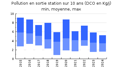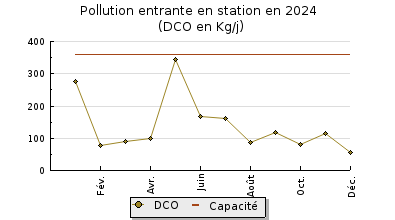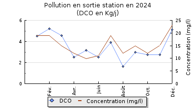 | DBO5 | 54 Kg/j | 30 % | 219 mg/l | 99 % | 0,7 Kg/j | 3,0 mg/l |