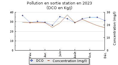 | DBO5 | 367 Kg/j | 46 % | 305 mg/l | 99 % | 3,0 Kg/j | 2,0 mg/l |