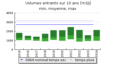 | Débit nominal temps pluie : | 3 130 m3/j |