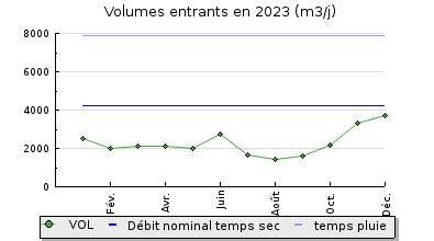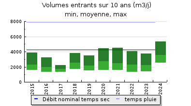 | Débit nominal temps pluie : | 7 860 m3/j |