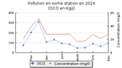 | DBO5 | 870 Kg/j | 61 % | 320 mg/l | 100 % | 7,2 Kg/j | 2,0 mg/l |