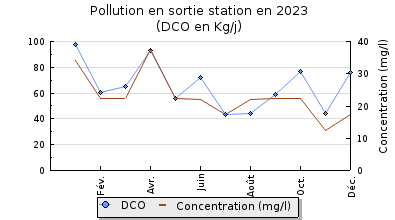 | DBO5 | 736 Kg/j | 49 % | 258 mg/l | 99 % | 8,8 Kg/j | 3,0 mg/l |