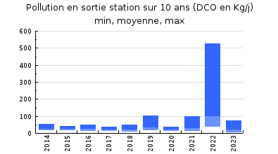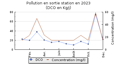 | DBO5 | 106 Kg/j | 44 % | 122 mg/l | 97 % | 2,8 Kg/j | 2,9 mg/l |