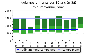 | Débit nominal temps pluie : | 1 500 m3/j |