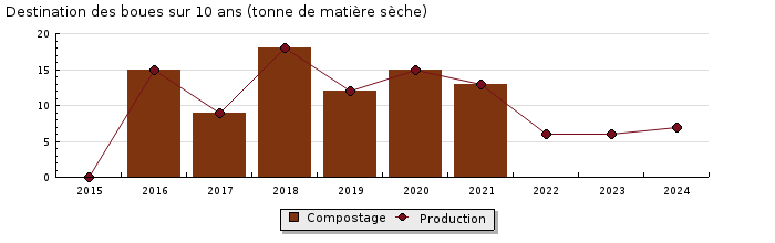 | Sous produits : Les refus de dégrillage sont évacués sur un CET (0.74 t). La capacité de stockage du décanteur digesteur pour les boues est de 210 m3. L'exploitant a réalisé 6 vidanges de boues du décanteur-digesteur pour un total de 6.7 tMS évacuées (calcul théorique : 11 tMS). Les boues sont transportées sur la step de Tarbes Est. |