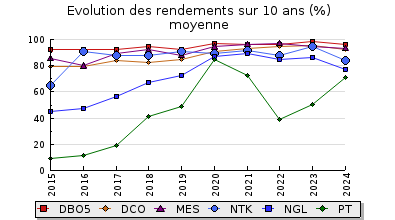 | DCO | 237 Kg/j | 88 % | 500 mg/l | 92 % | 19 Kg/j | 41 mg/l |