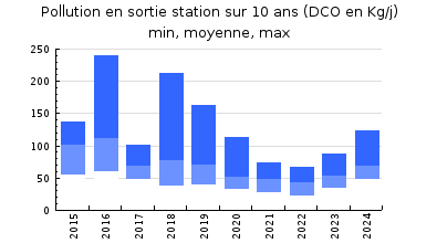 | DBO5 | 632 Kg/j | 66 % | 270 mg/l | 99 % | 8,5 Kg/j | 3,5 mg/l |