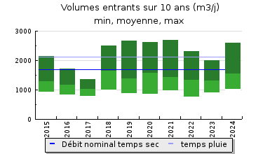 | Débit nominal temps pluie : | 2 125 m3/j |