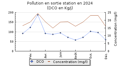 | DBO5 | 934 Kg/j | 78 % | 215 mg/l | 99 % | 11 Kg/j | 2,2 mg/l |