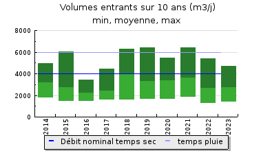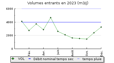 | Débit nominal temps pluie : | 6 000 m3/j |