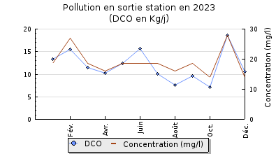 | DBO5 | 125 Kg/j | 59 % | 219 mg/l | 98 % | 1,9 Kg/j | 3,0 mg/l |