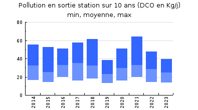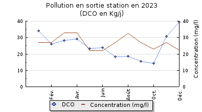 | DBO5 | 176 Kg/j | 49 % | 222 mg/l | 97 % | 4,9 Kg/j | 5,2 mg/l |