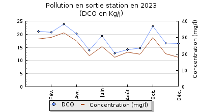 | DBO5 | 232 Kg/j | 55 % | 284 mg/l | 99 % | 2,4 Kg/j | 3,2 mg/l |