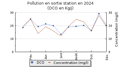 | DBO5 | 295 Kg/j | 70 % | 260 mg/l | 99 % | 3,3 Kg/j | 3,2 mg/l |
