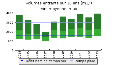| Débit nominal temps pluie : | 3 000 m3/j |