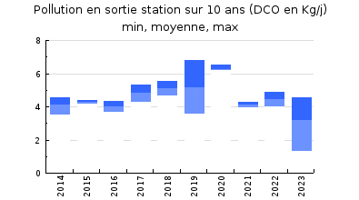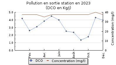| DBO5 | 52 Kg/j | 44 % | 380 mg/l | 99 % | 0,3 Kg/j | 3,9 mg/l |