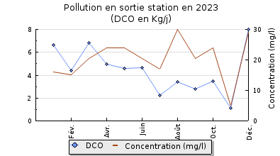 | DBO5 | 59 Kg/j | 35 % | 266 mg/l | 99 % | 0,6 Kg/j | 2,6 mg/l |