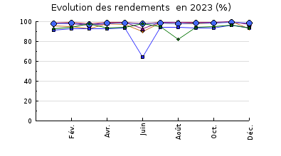 | Station d'épuration : Le carnet de bord est informatique. L'ensemble des informations sont incrémentées de la supervision (Topkapi) vers un fichier Excel. Les ouvrages sont propres et en bon état. Les espaces verts sont entretenus par la société Pinson. La télésurveillance se fait par l'intermédiaire d'un SOFREL S550 sur la station. L'aération du bassin se fait en fonction du taux d'oxygène dissous. La recirculation correspond à 110% du débit entrant dont 1/3 vers la zone de contact et 2/3 dans le bassin d'aération. La concentration des boues est d'environ de 3.45 g/l et l'indice de boue (75ml/g) témoigne de la bonne décantabilité des boues. Le séchoir à boue fonctionne correctement. On note que le dégrilleur automatique est toujours en panne (courroie cassée). Le traitement du phosphore se fait par injection de Filafloc. La zone de rejet végétalisée est composée de deux lagunes. Les macrophytes colonisent bien les bords. La ZRV limite fortement le débit. Elle est capable d'assimiler une bonne partie du débit (environ 60%) par infiltration. Il n'y a pas de manuel d'autosurveillance pour cette station. Le contrôle de l'autosurveillance ne montrait pas de dysfonctionnement. Il n'existe pas de manuel d'autosurveillance pour cette station. Le taux de charge hydraulique est d'environ 47 % en moyenne et la charge organique varie entre 28 et 50% en moyenne selon les paramètres. |