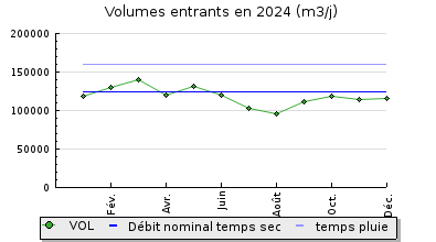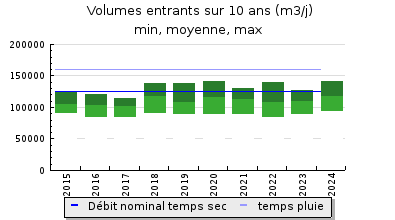 | Débit nominal temps pluie : | 160 000 m3/j |