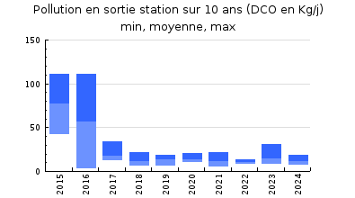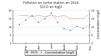| DBO5 | 174 Kg/j | 41 % | 256 mg/l | 99 % | 1,5 Kg/j | 2,0 mg/l |