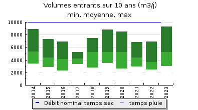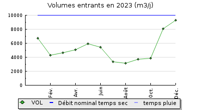 | Débit nominal temps sec : | 10 000 m3/j |