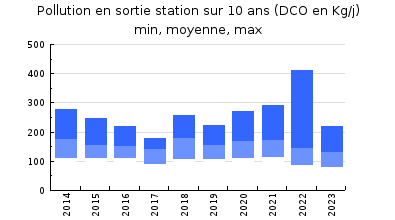 | DBO5 | 1 021 Kg/j | 34 % | 206 mg/l | 98 % | 17 Kg/j | 3,0 mg/l |