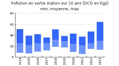 DBO5 | 46 Kg/j | 11 % | 68 mg/l | 94 % | 2,8 Kg/j | 3,5 mg/l |
