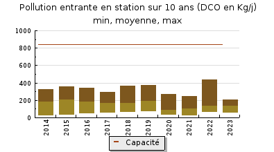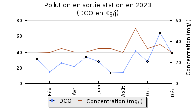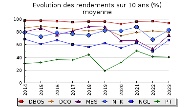 | DBO5 | 46 Kg/j | 11 % | 68 mg/l | 94 % | 2,8 Kg/j | 3,5 mg/l |