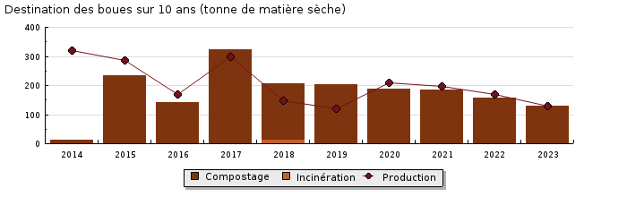| Sous produits : L'exploitant achemine les boues sur trois plateformes de compostage : Sanchez, Vivanat et Fertilomagne. Une rélexion est en cours sur la mise en place d'un silo d'épaississement. L'unité de deshydratation semble actuellement limitée par son rendement : l'intervention d'une unité de déshydratation mobile permettrait de régulariser la situation. |