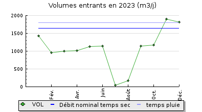 | Débit nominal temps pluie : | 1 795 m3/j |