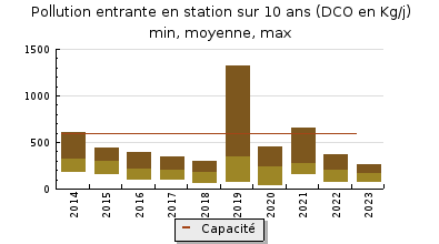 | DBO5 | 78 Kg/j | 26 % | 245 mg/l | 97 % | 2,0 Kg/j | 5,1 mg/l |