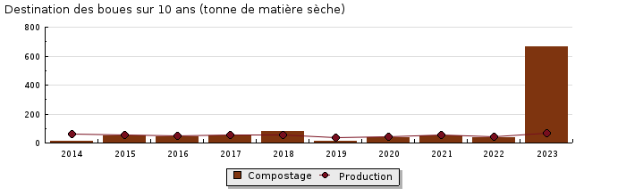 | Sous produits : Les boues sont traitées avec un polymère et par une presse à bande. Les boues produites sont acheminés vers la plate forme de compostage de Castéron. |