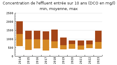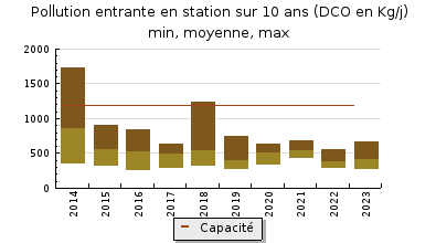 | DBO5 | 155 Kg/j | 26 % | 306 mg/l | 99 % | 1,3 Kg/j | 2,3 mg/l |