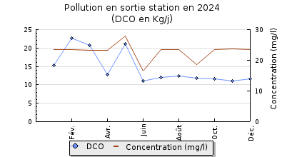 | DBO5 | 220 Kg/j | 37 % | 389 mg/l | 99 % | 1,4 Kg/j | 2,3 mg/l |