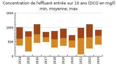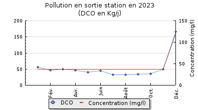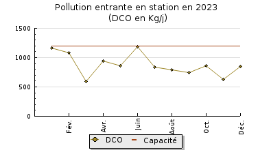 | DBO5 | 383 Kg/j | 64 % | 312 mg/l | 99 % | 2,8 Kg/j | 2,4 mg/l |