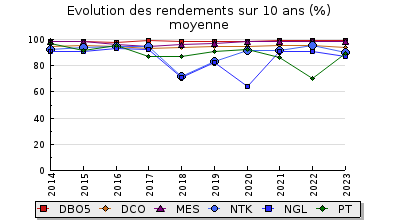 | PT | 12 Kg/j | 9,5 mg/l | 89 % | 1,3 Kg/j | 1,2 mg/l | |