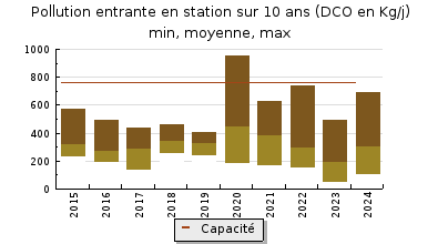 | DBO5 | 110 Kg/j | 29 % | 180 mg/l | 98 % | 2,2 Kg/j | 3,0 mg/l |