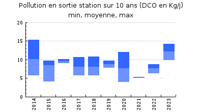 | Station d'épuration : Taux d'occupation : 45% hydraulique en moyenne, 26% en organique. Fonctionnement satisfaisant des installations et très bonne qualité de traitement.. La gestion est rigoureuse : Bonne tenue du cahier d'exploitation. Bon suivi des paramètres physico-chimiques et des décantations des boues. Les travaux réalisés : Mise en place d'une sonde pour protéger la pompe à polymère (arrêt lors du fonctionnement à sec). Remise en service de la pompe 1. La mise en sécurité du poste avec la mise en place de barres antichute est à faire. Les améliorations possibles : La remise en service des agitateurs dans le bassin d'aération. Le changement des membranes permettrait un bullage plus fin donc un meilleur rendement de l'aération qui pourrait engendrer des économies d'énergie. Une réflexion est menée pour une meilleure gestion des eaux claires parasites. De nouveaux réglages de recirculation ont été appliqués afin de diminuer le temps de séjour des boues. |