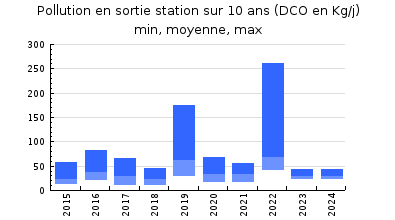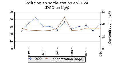 | DBO5 | 170 Kg/j | 47 % | 213 mg/l | 98 % | 3,1 Kg/j | 3,4 mg/l |
