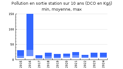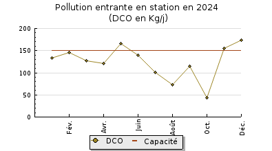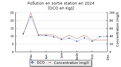| DBO5 | 48 Kg/j | 16 % | 209 mg/l | 97 % | 1,4 Kg/j | 6,0 mg/l |