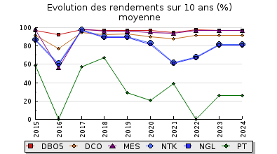 | PT | 1,6 Kg/j | 7,2 mg/l | 26 % | 1,2 Kg/j | 4,9 mg/l | |