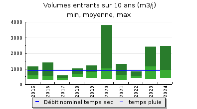 | Débit nominal temps sec : | 900 m3/j |
