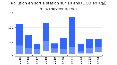 | Station d'épuration : Taux d'occupation moyen : 75% en hydraulique et 50% organique. Bon fonctionnement et bon entretien de la station. L'outil épuratoire ne présente aucun dysfonctionnement mais une saturation de la tête du bassin 1 est visible. Un bloom algal au niveau des bassins 2 et 3 peut provoquer une coloration du milieu récepteur sur la zone de mélange. La commune a fait réaliser uné étude préalable au curage et à la réhabilitation du site, ainsi que d'amélioration du traitement du Phosphore, en 2022. Divers scénario de réhabilitation des berges sont envisagés afin de limiter voire éliminer fortement l'entretien et les dégâts occasionnés par les ragondins sur le site. Préconisations pour les futurs travaux : reprofiler certaines berges instables et bétonnage localisé. Le curage des boues des bassins et la reprise des berges sont toujours dactualité mais ne sont pas programmés sur le second semestre 2024. |