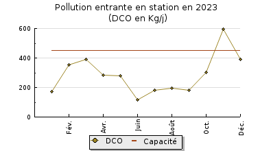 | DBO5 | 105 Kg/j | 26 % | 172 mg/l | 99 % | 1,4 Kg/j | 2,0 mg/l |