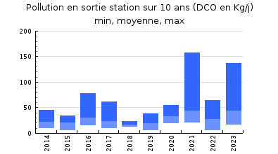 | DBO5 | 271 Kg/j | 69 % | 232 mg/l | 96 % | 11 Kg/j | 7,4 mg/l |